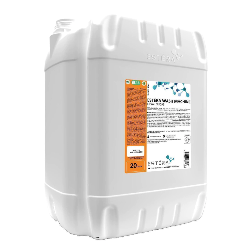ESTÉRA WASH MACHINE é um lava louças utilizado para lavagem de louças e utensílios em máquinas automáticas de lavar, através de dosadores eletrônicos.