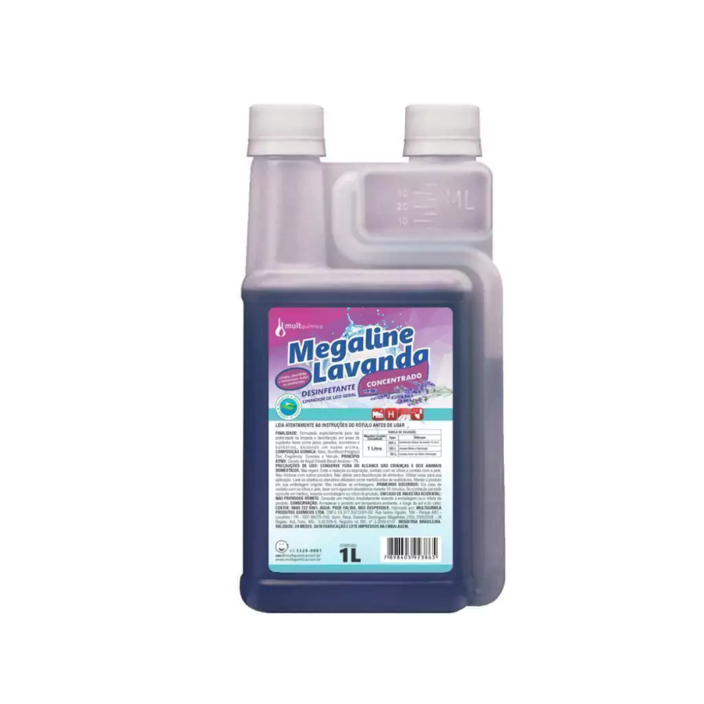 O MEGALINE LAVANDA CONCENTRADO 1L é o desinfetante perfeito para quem busca eficiência, praticidade e fragrância agradável em uma única solução. Ideal para a limpeza, desinfecção e odorização de superfícies em geral, este produto oferece alto rendimento e uma ação segura, graças ao seu princípio ativo à base de quaternário de amônio.